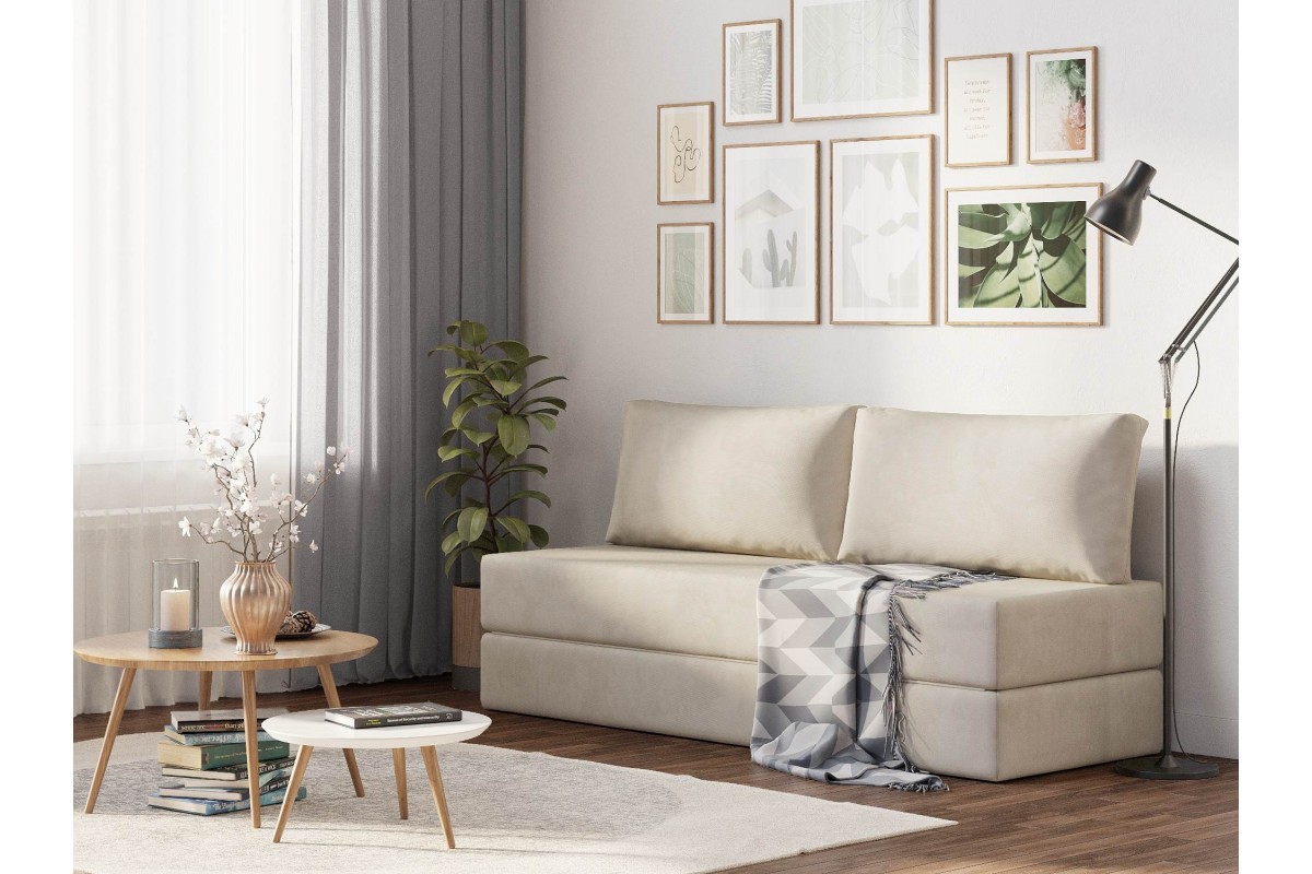 Диван бескаркасный Алерия раскладной бежевый велюр, артикул 10498011