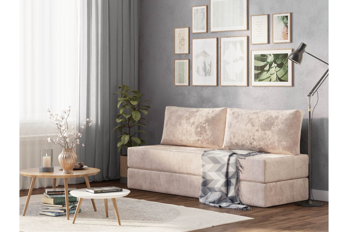 Диван бескаркасный Алерия раскладной бежевый велюр, артикул 10498017