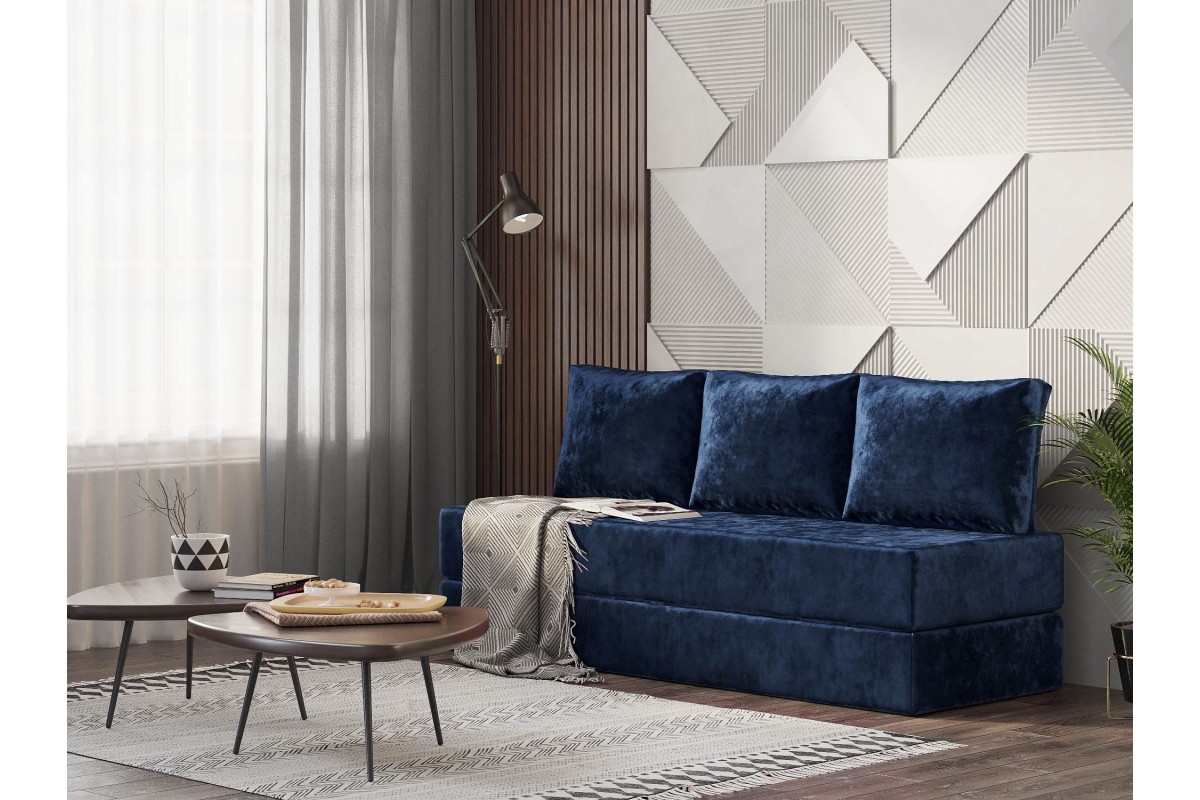 Диван бескаркасный Ангилья раскладной синий велюр, артикул 10497974