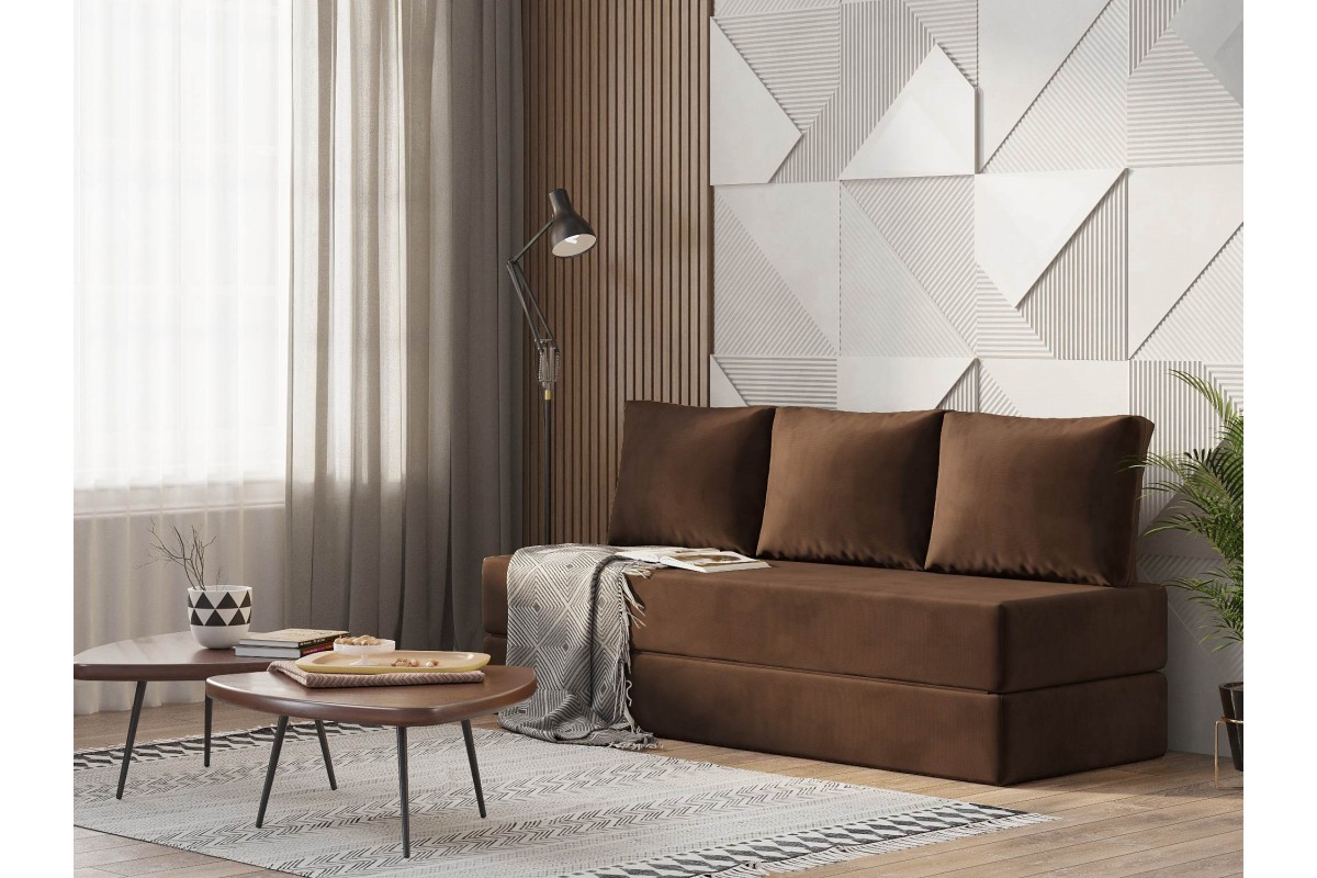 Диван бескаркасный Ангилья раскладной коричневый велюр, артикул 10497959