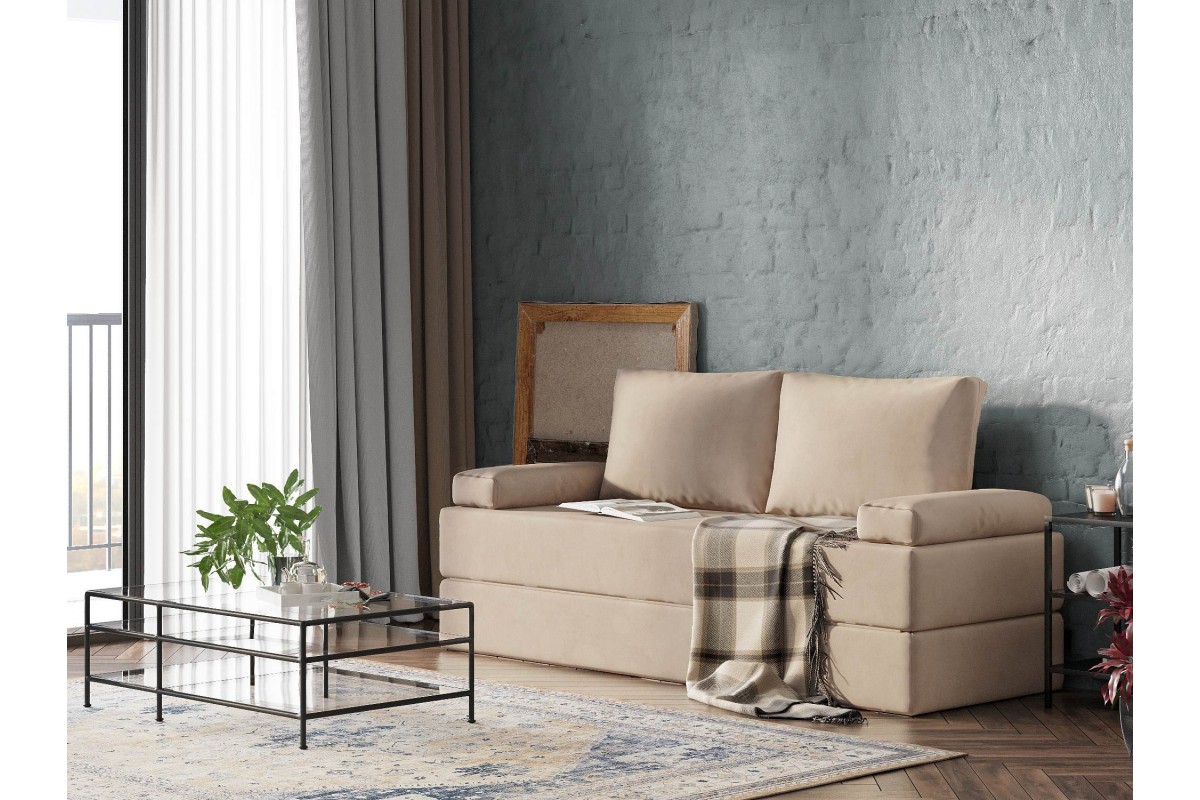 Диван бескаркасный Бруклин раскладной бежевый велюр, артикул 10497986