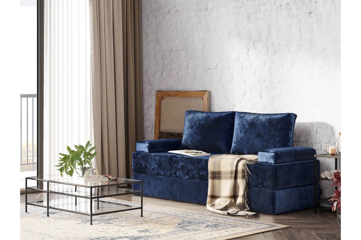 Диван бескаркасный Бруклин раскладной синий велюр, артикул 10497996