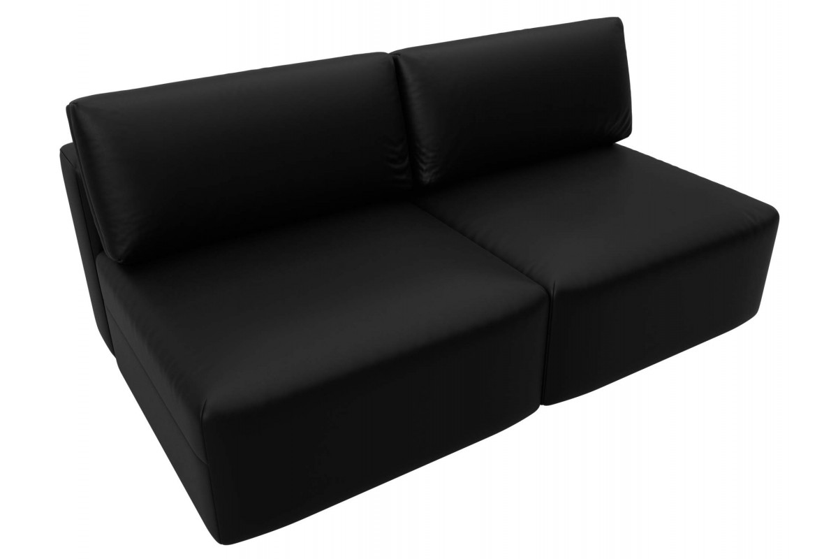 Диван прямой модульный Лига-060 НПБ еврокнижка черный экокожа, артикул 10483069