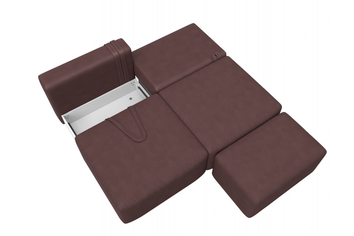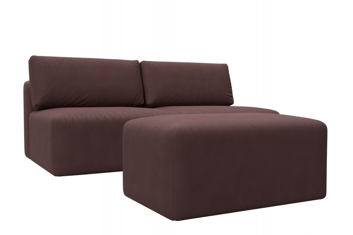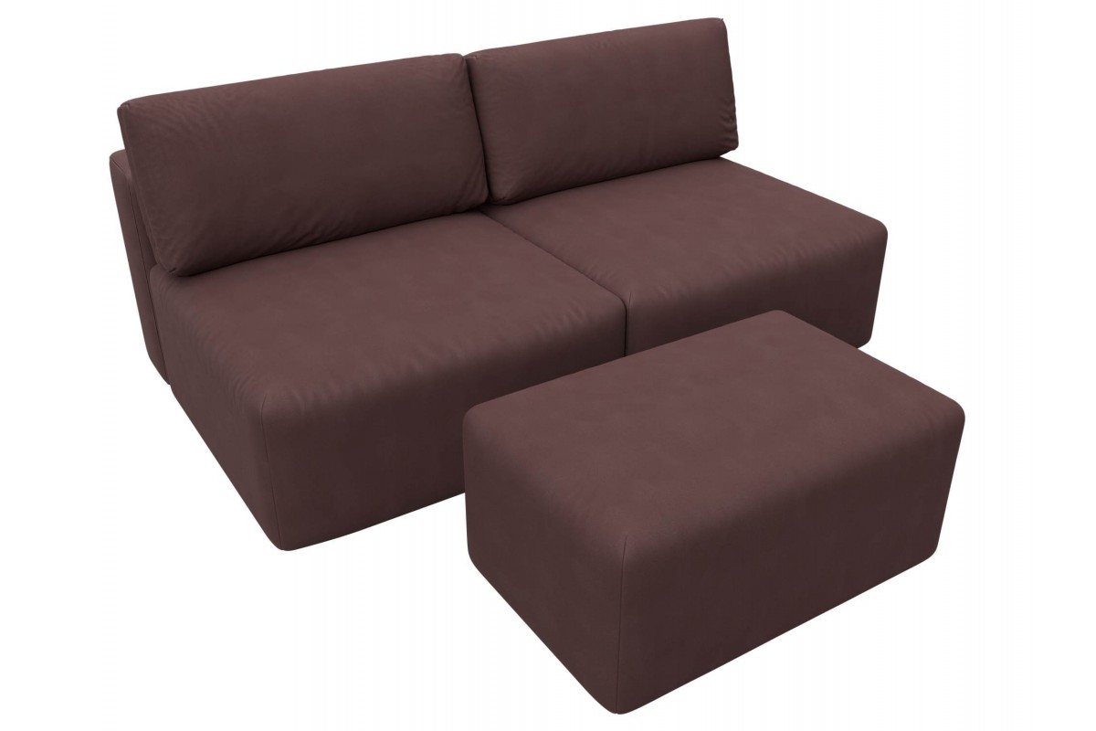 Диван прямой модульный с пуфом Лига-060 НПБ еврокнижка красный замша, артикул 10483066
