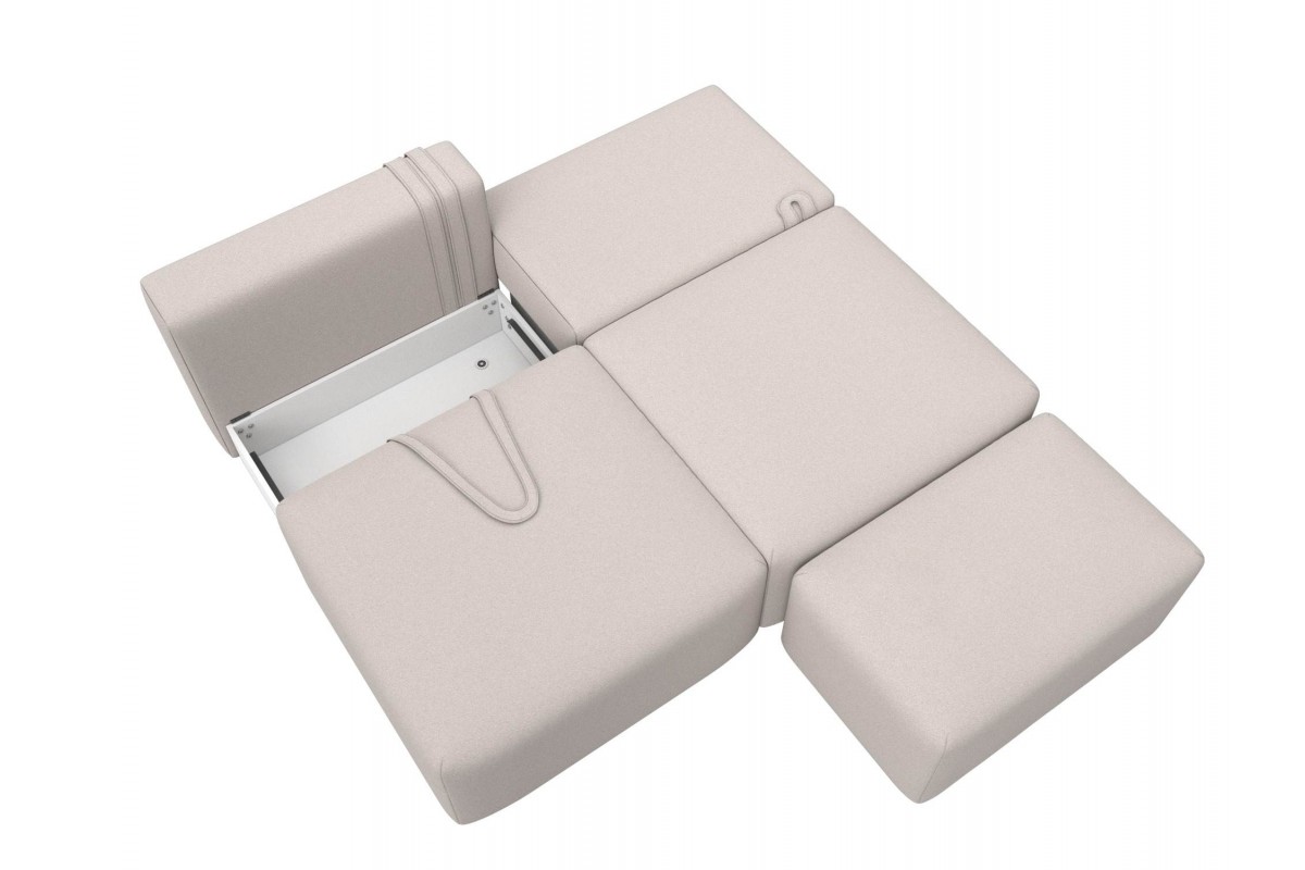 Диван прямой модульный с пуфом Лига-060 НПБ еврокнижка бежевый замша, артикул 10483072