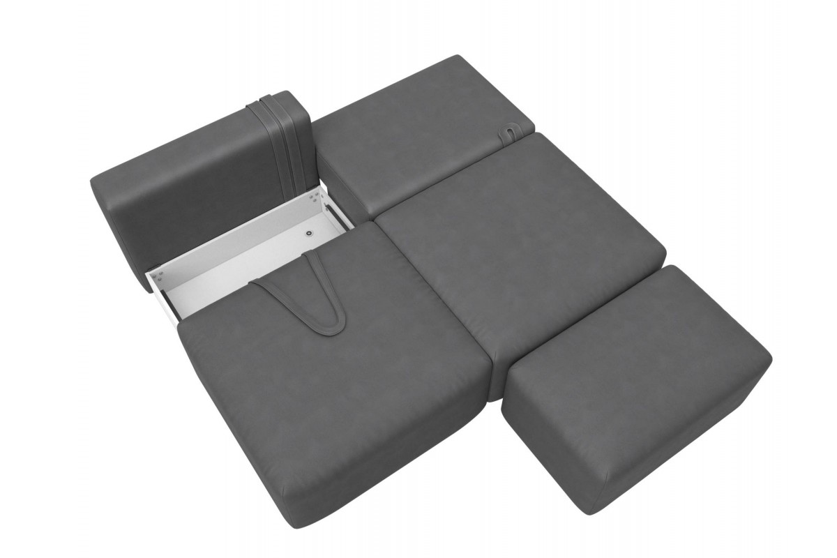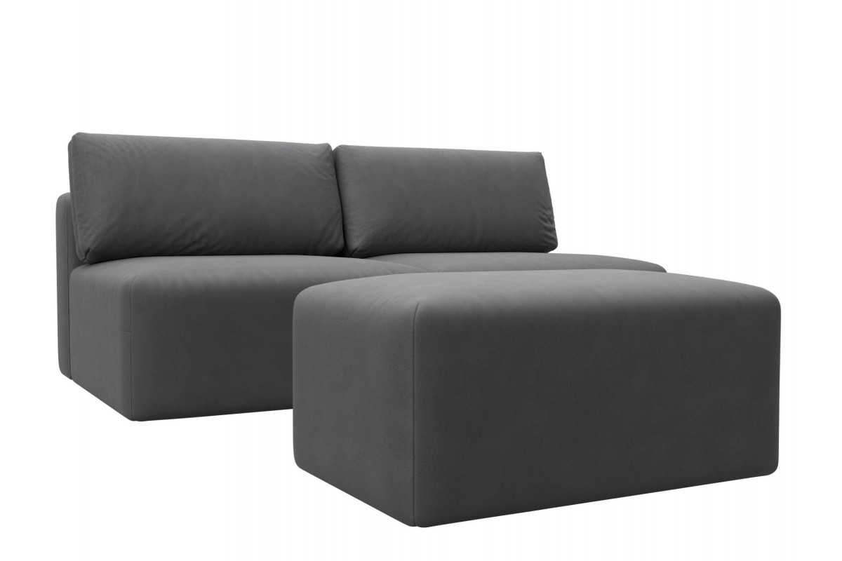 Диван прямой модульный с пуфом Лига-060 НПБ еврокнижка серый замша, артикул 10483074