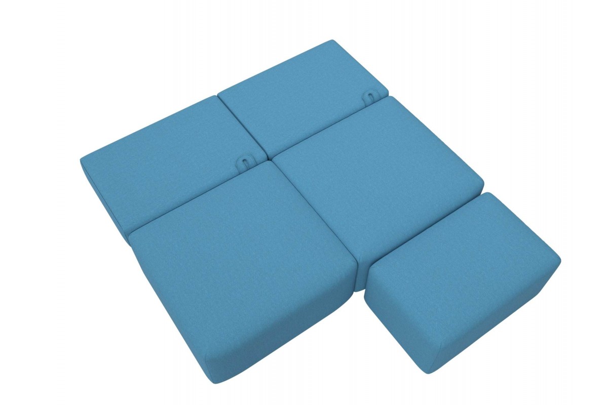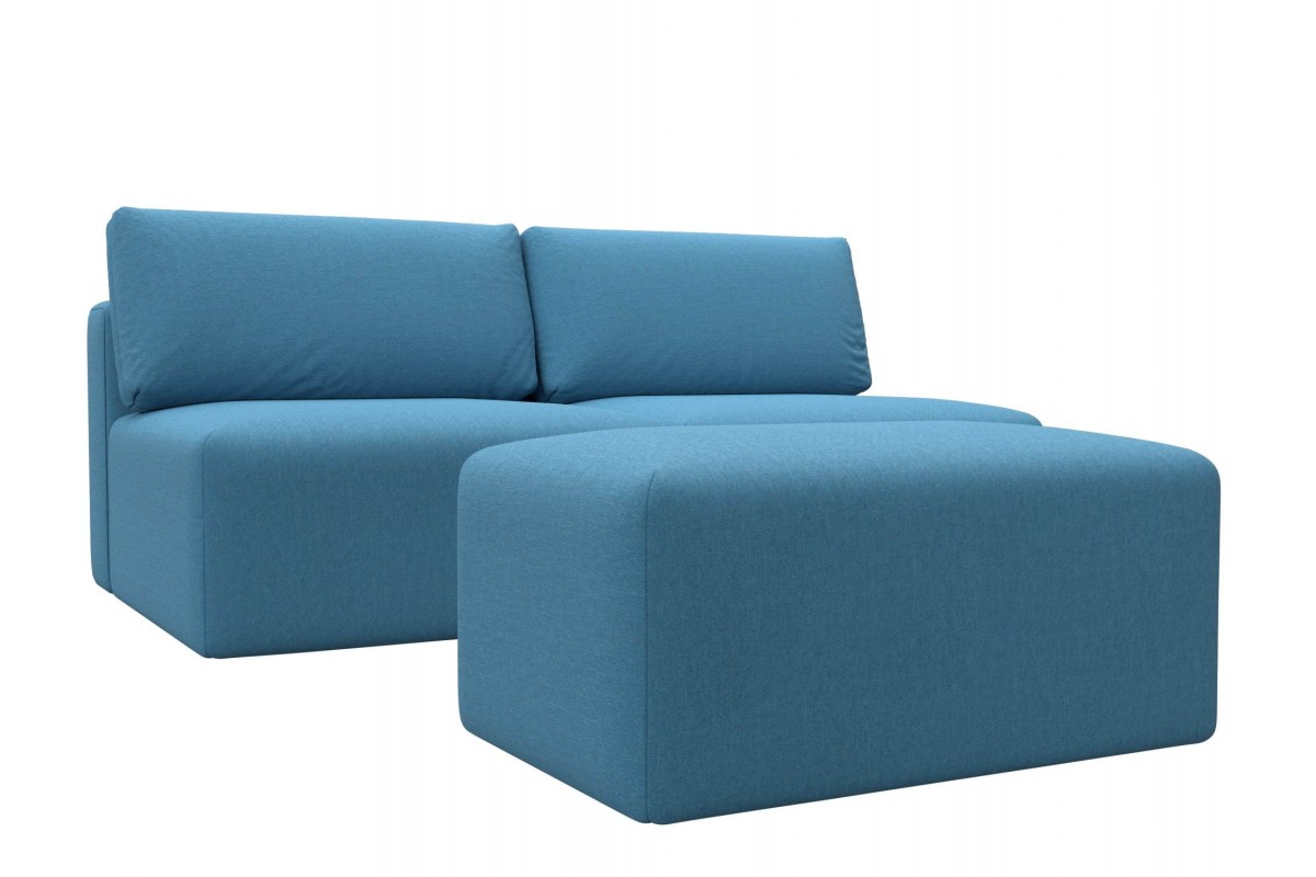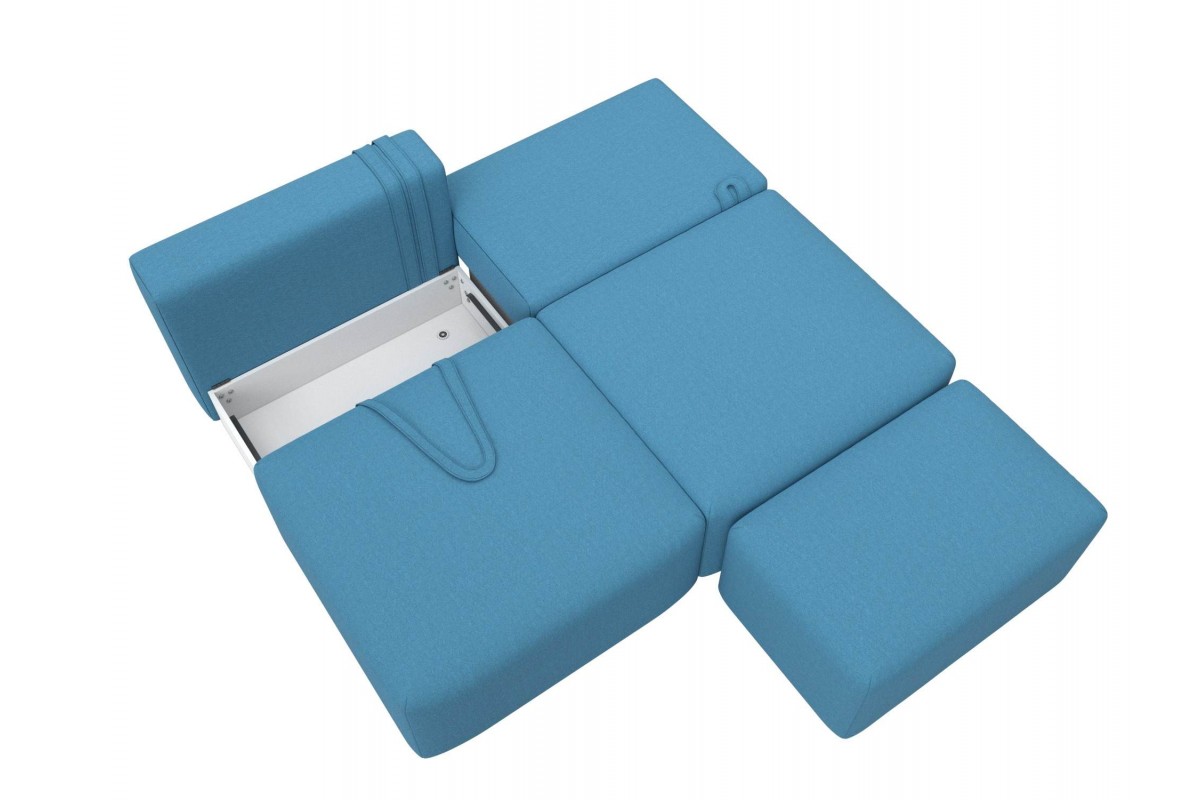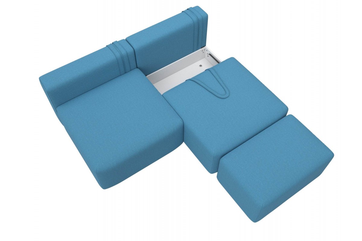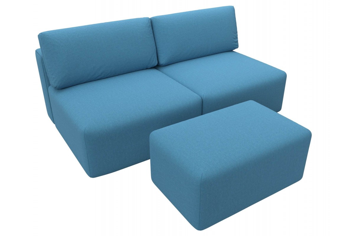 Диван прямой модульный с пуфом Лига-060 НПБ еврокнижка голубой рогожка, артикул 10483080