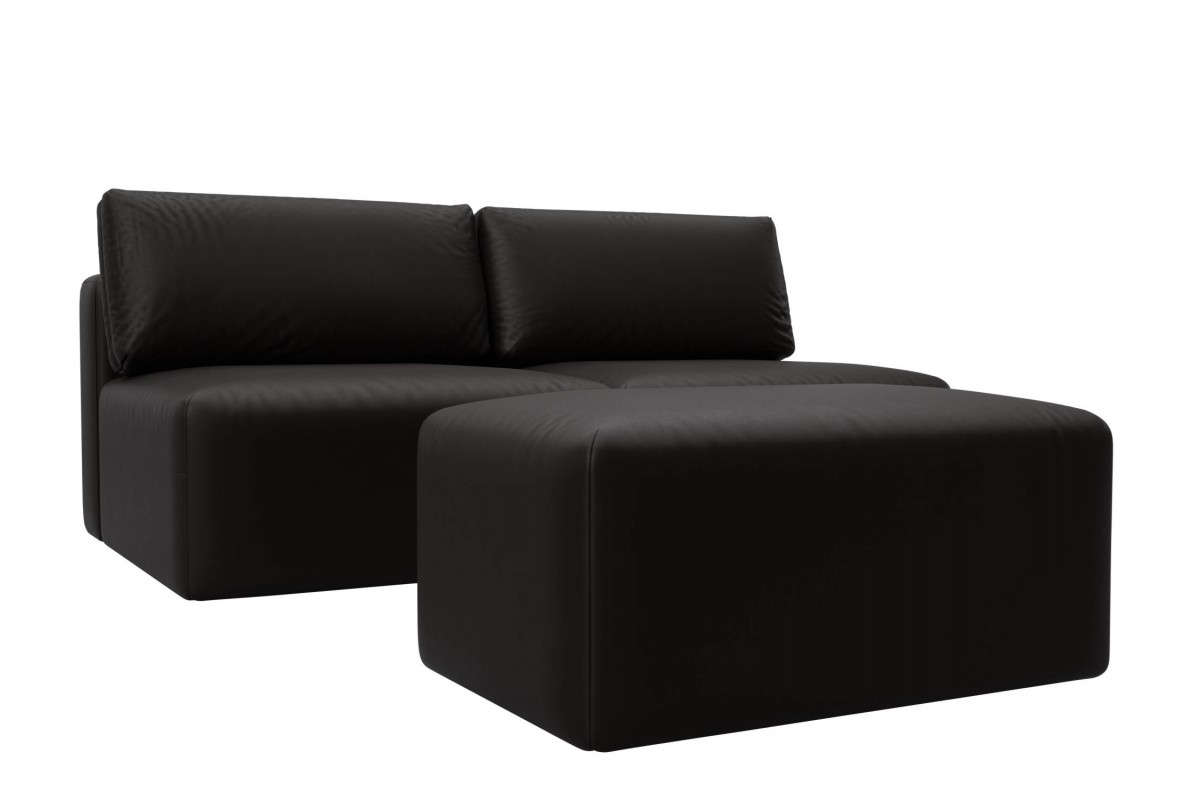 Диван прямой модульный с пуфом Лига-060 НПБ еврокнижка коричневый экокожа, артикул 10483086