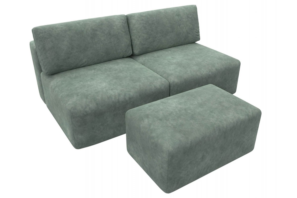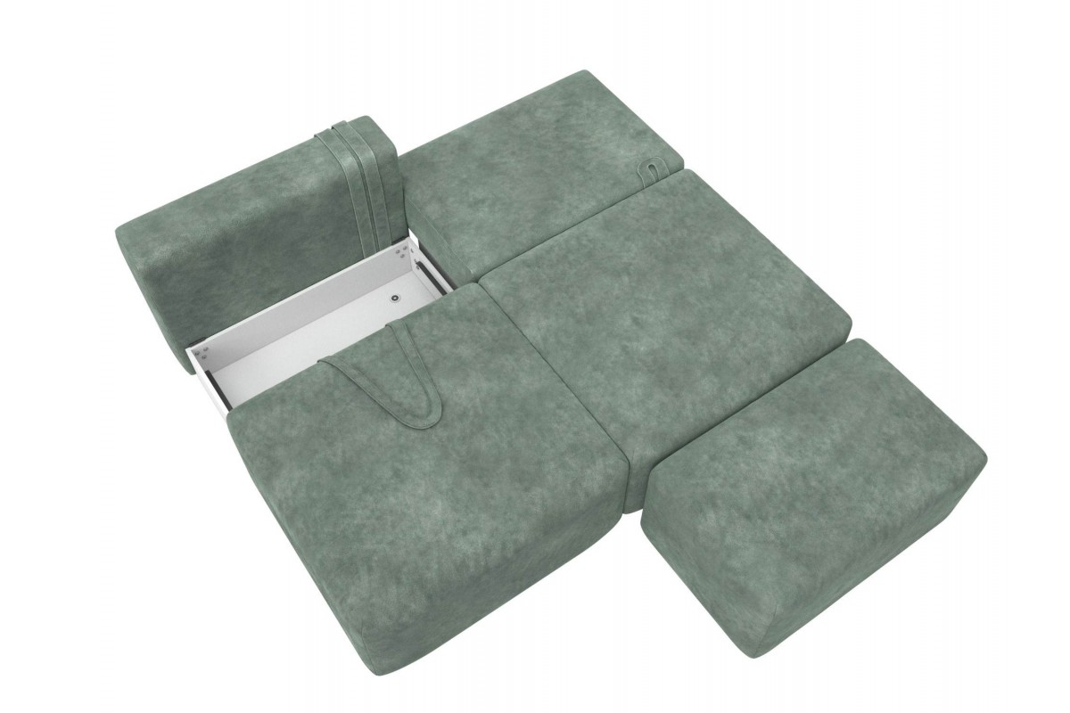 Диван прямой модульный с пуфом Лига-060 НПБ еврокнижка зеленый велюр, артикул 10483051