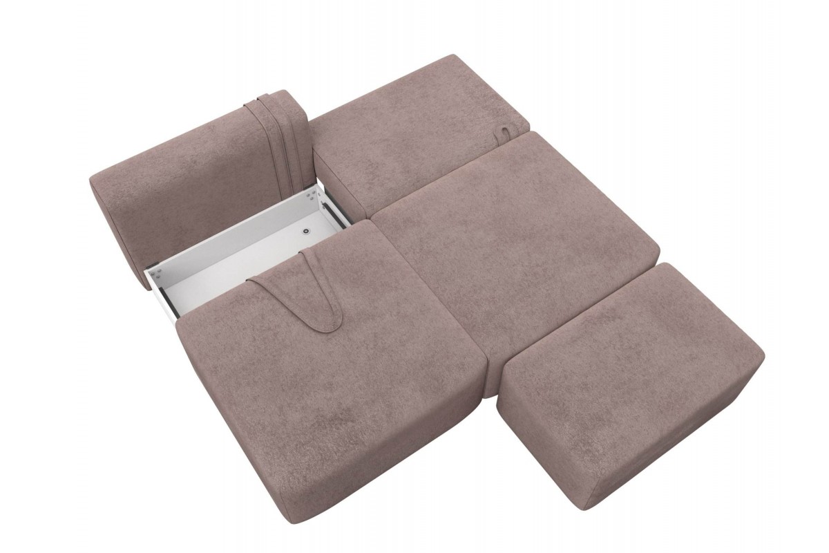 Диван прямой модульный с пуфом Лига-060 НПБ еврокнижка бежевый велюр, артикул 10483057