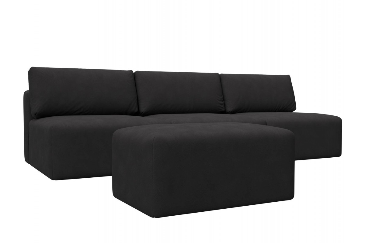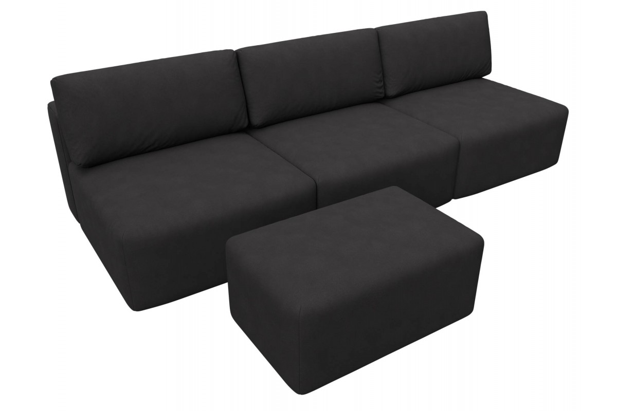 Диван прямой модульный с пуфом Лига-060 НПБ Лонг еврокнижка коричневый замша, артикул 10483101