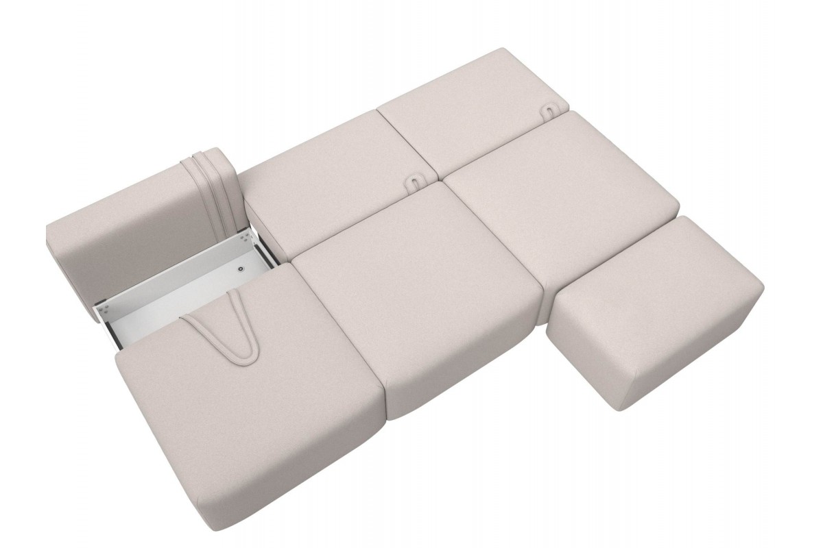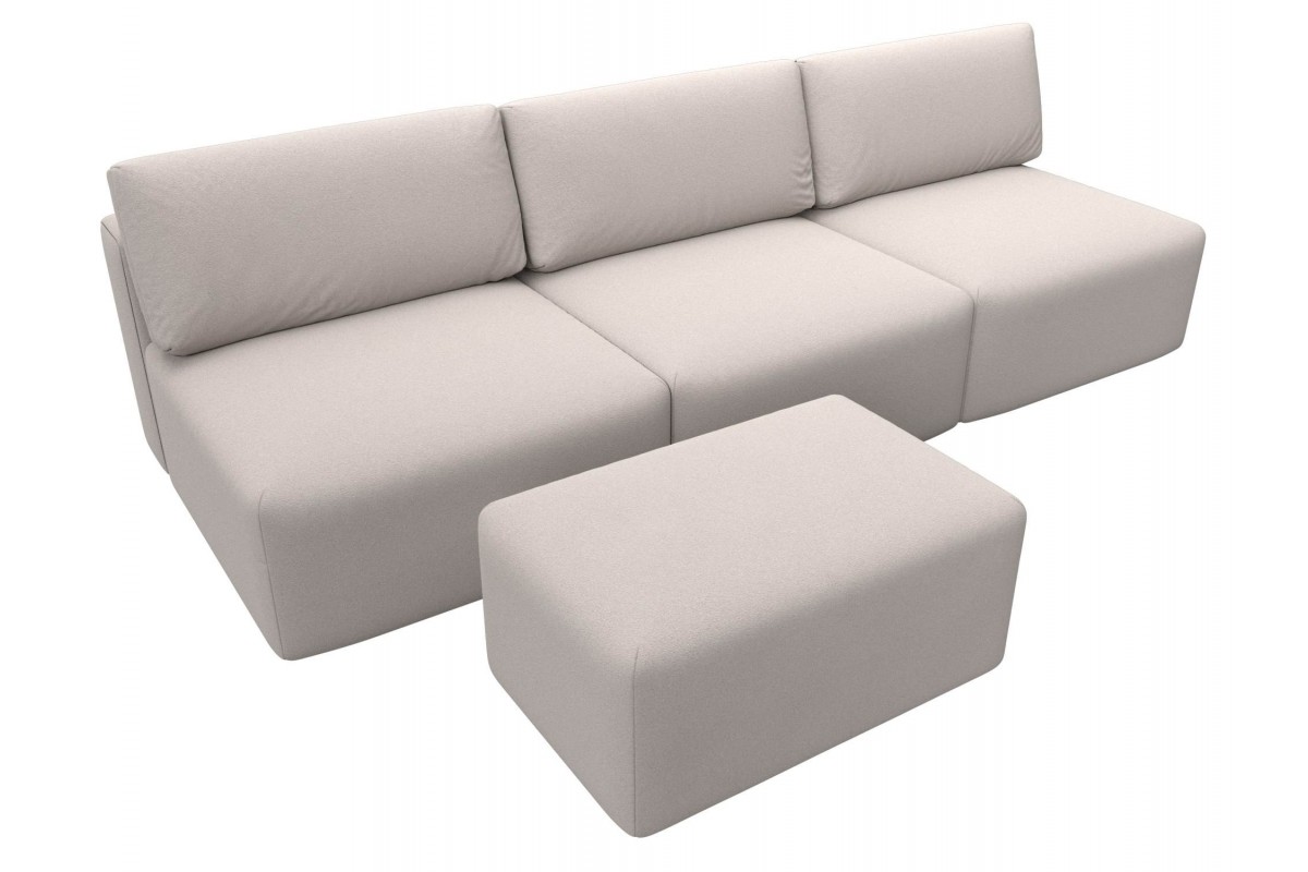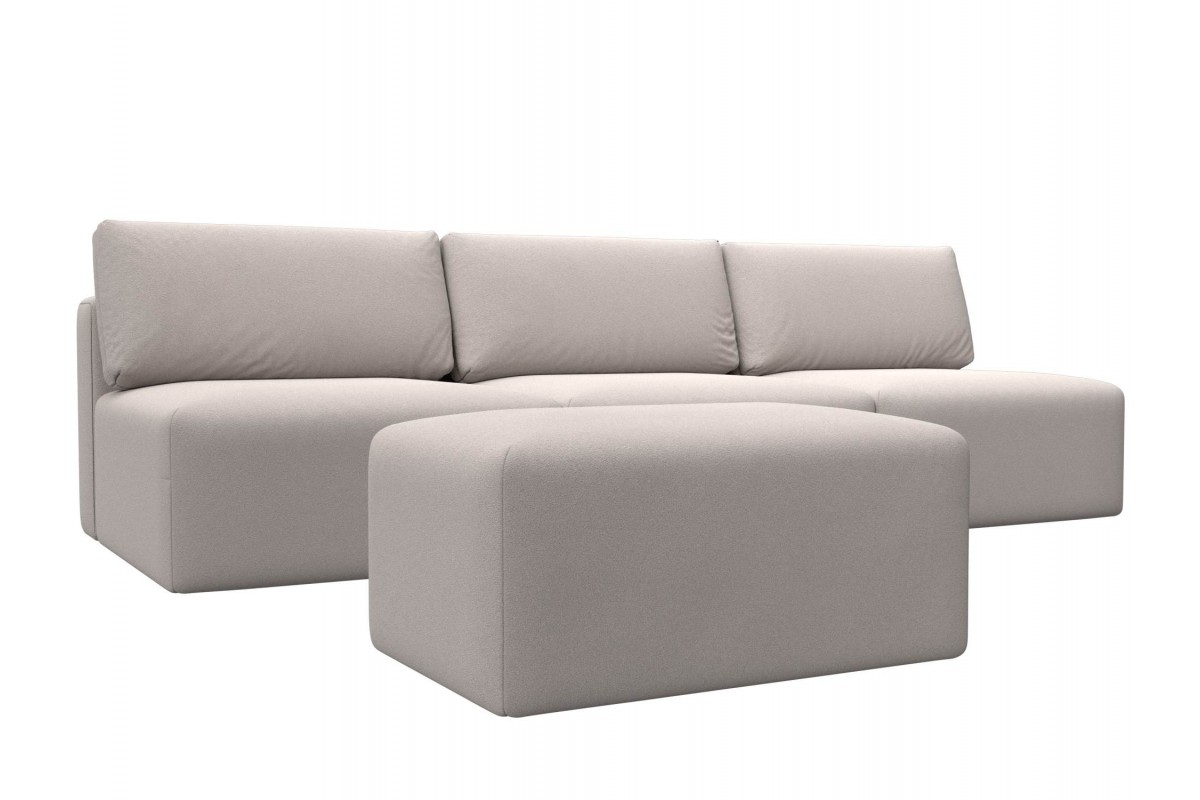 Диван прямой модульный с пуфом Лига-060 НПБ Лонг еврокнижка бежевый замша, артикул 10483092