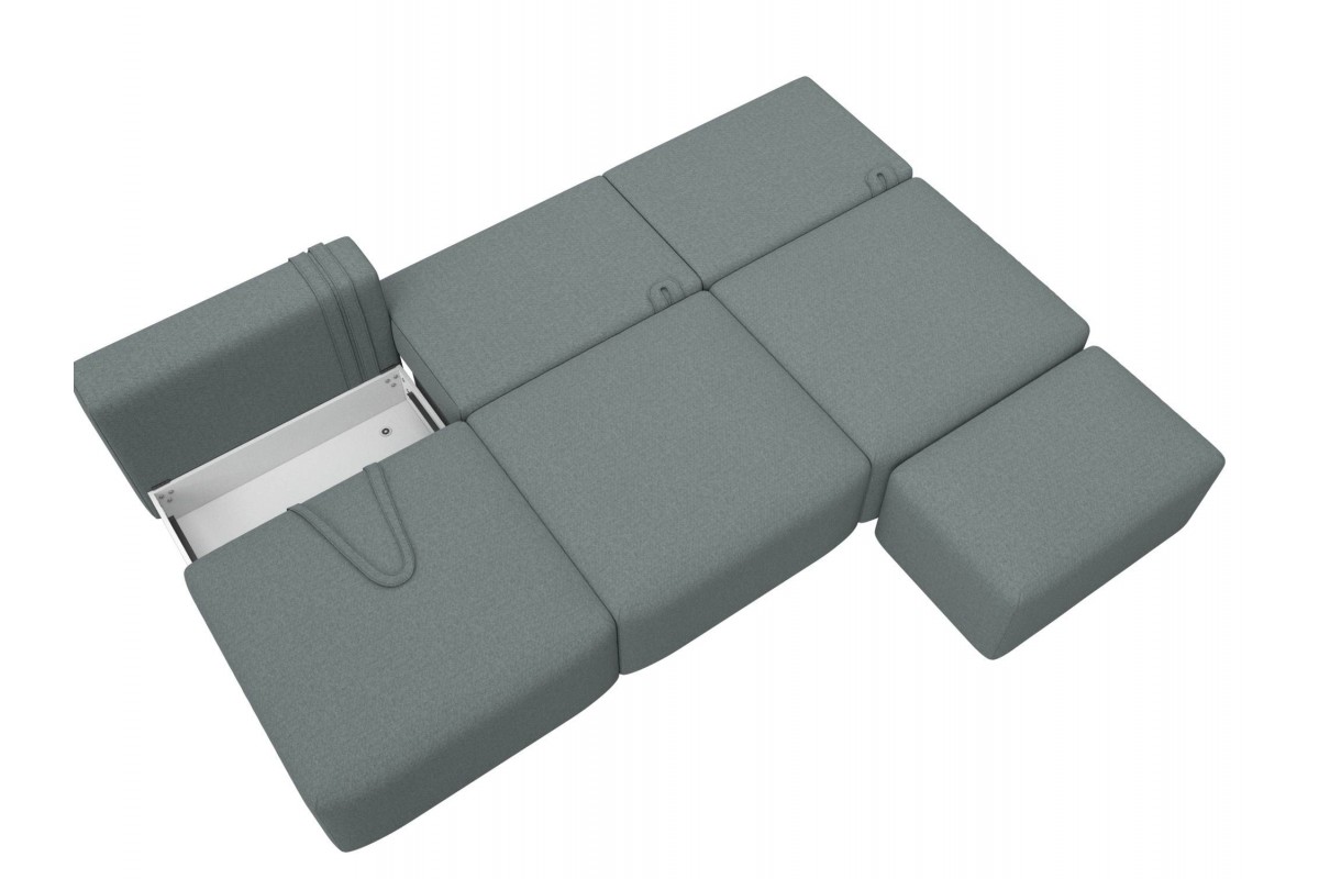Диван прямой модульный с пуфом Лига-060 НПБ Лонг еврокнижка серый рогожка, артикул 10483094