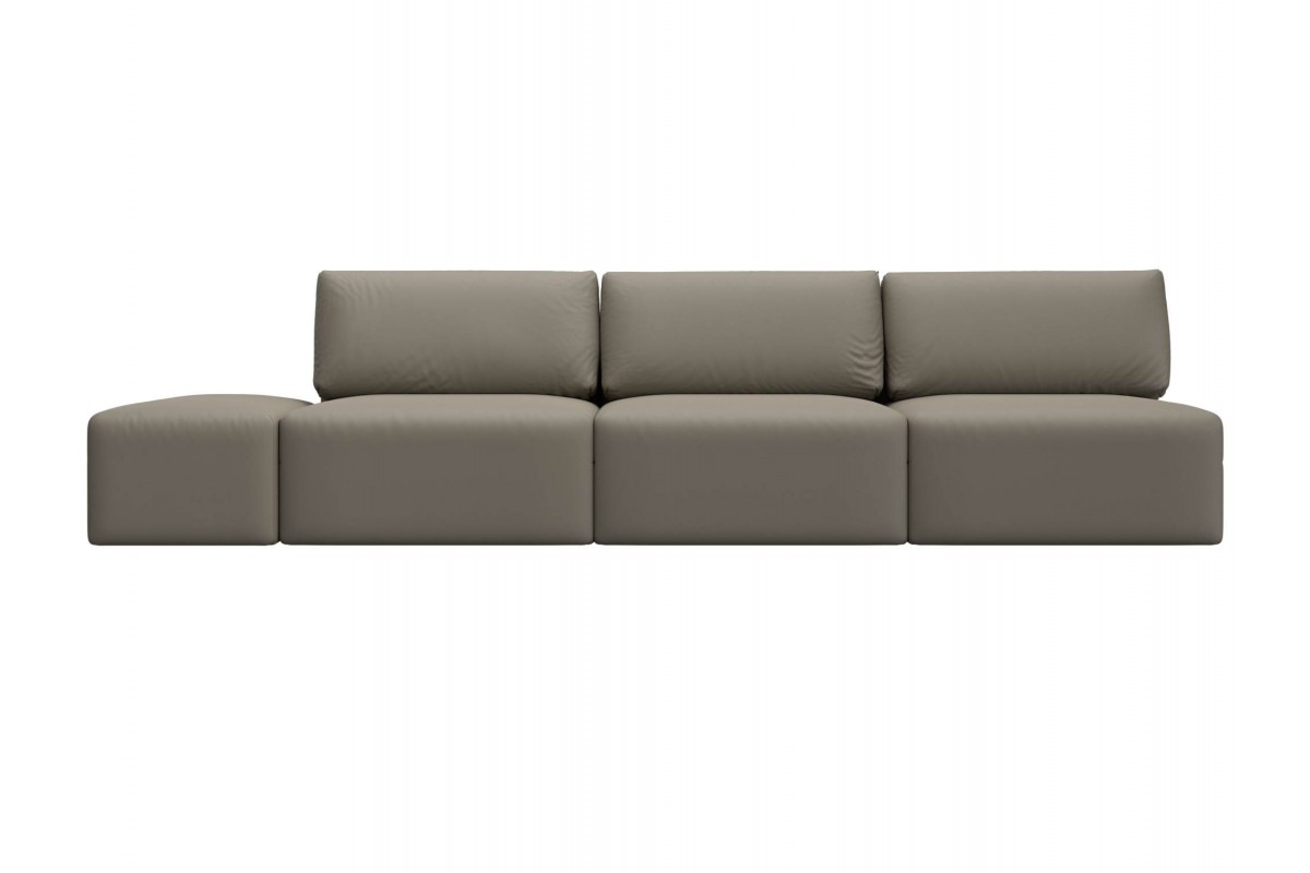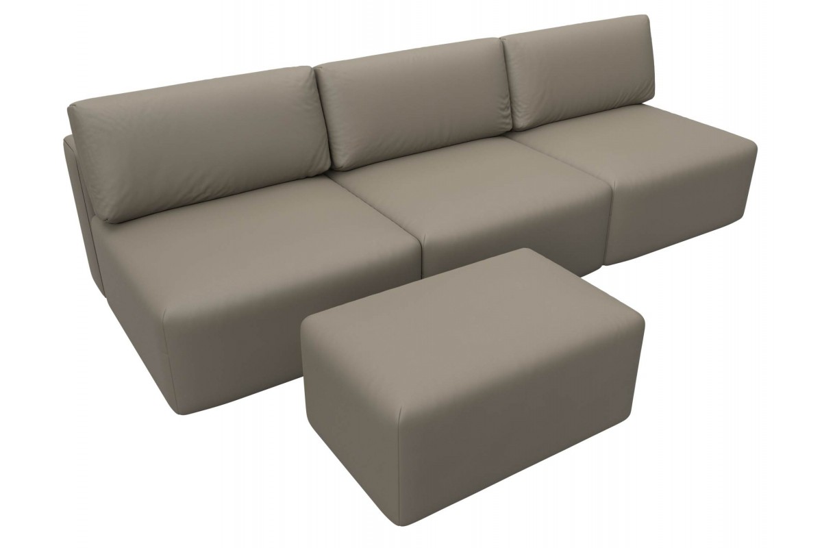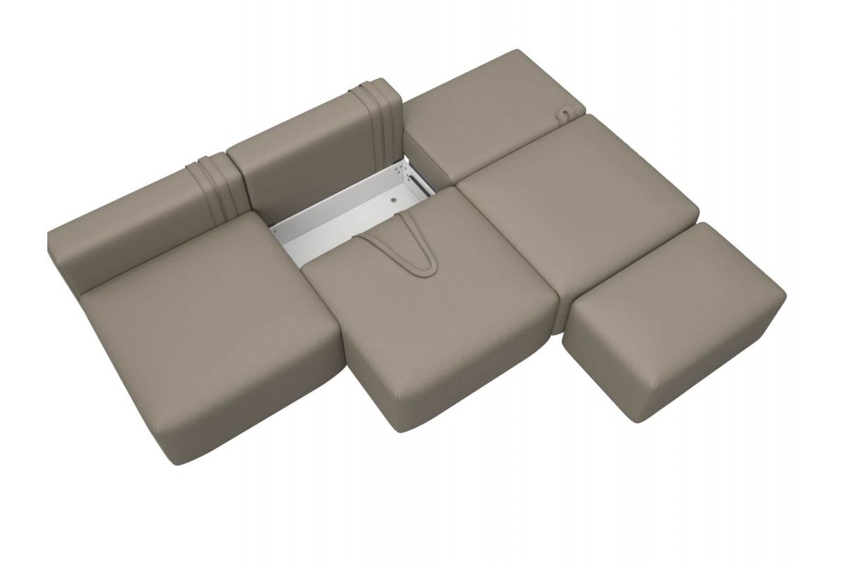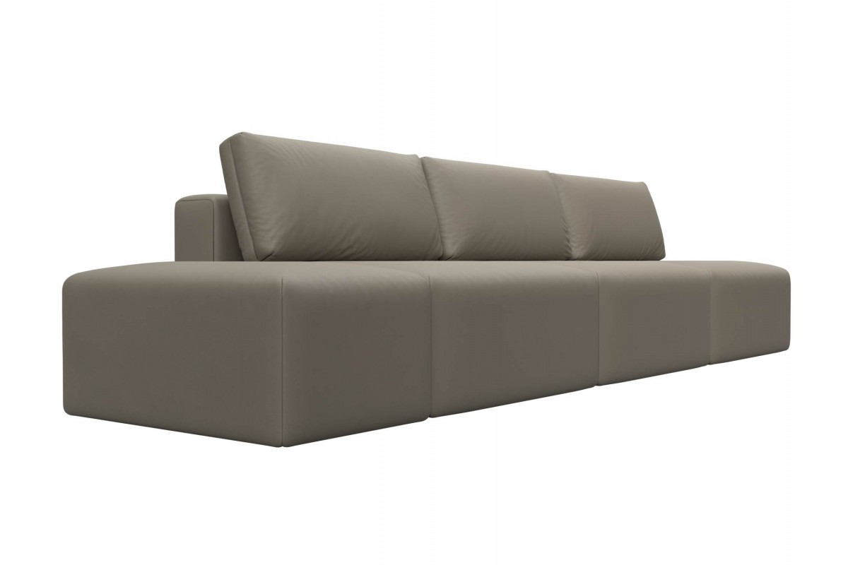 Диван прямой модульный с пуфом Лига-060 НПБ Лонг еврокнижка бежевый экокожа, артикул 10483096